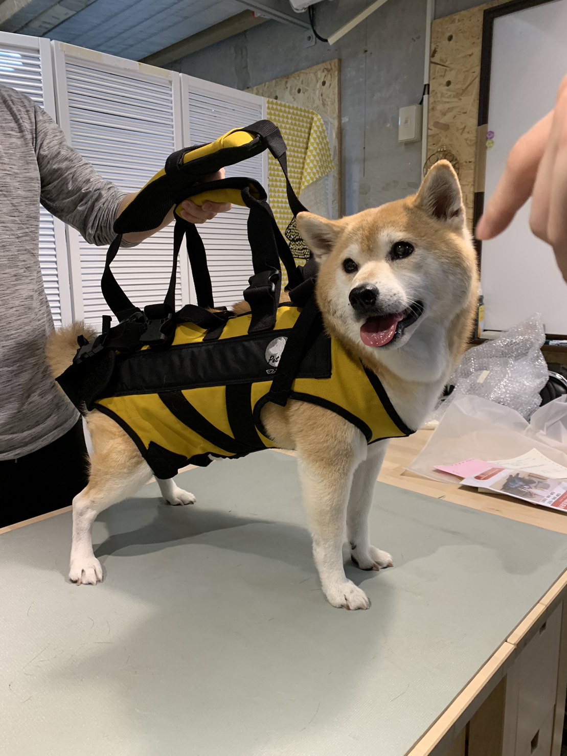 在試穿輔助衣的過程中,屁屁顯得非常配合,