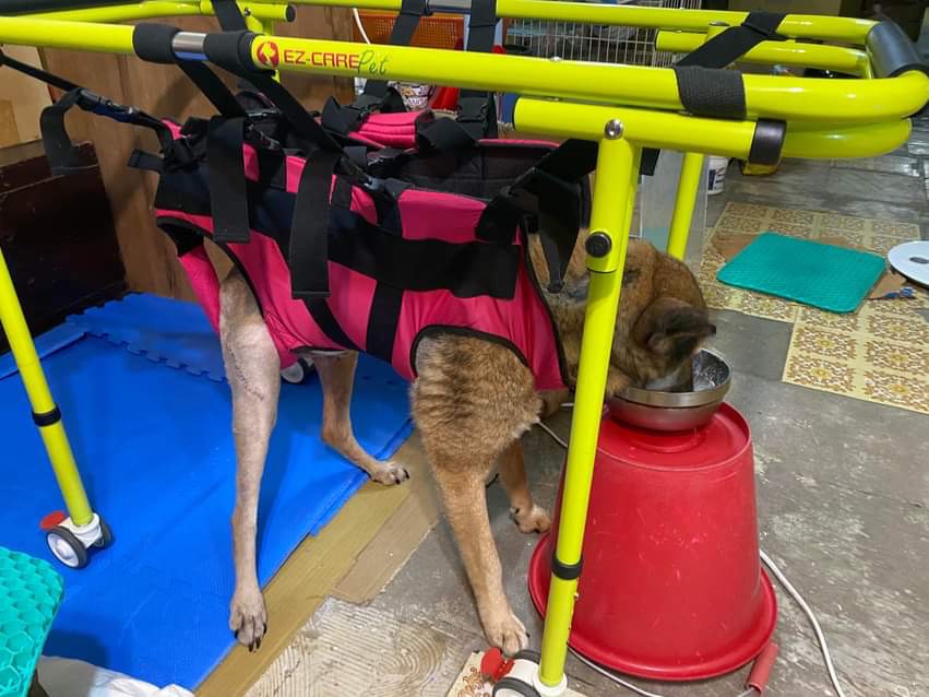 Aka妳要加油~使用了輔助衣與寵物助行器訓練站立增強肌肉力還可以好好站起來吃飯,