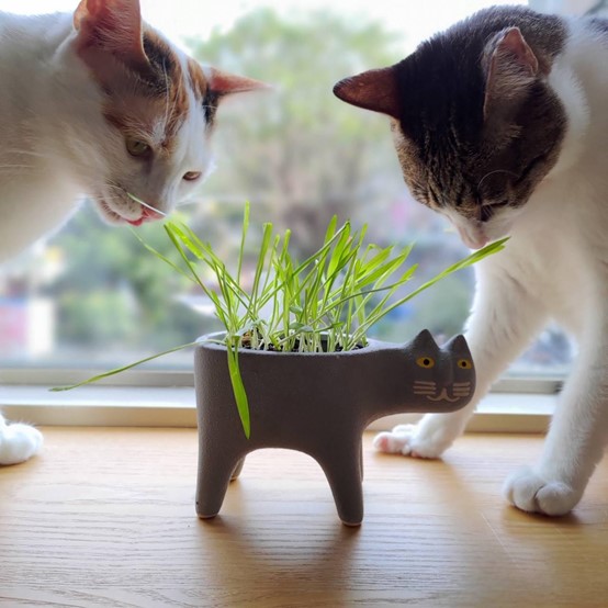 黃金葛、常春藤、垂榕、仙客來、鈴蘭、水仙花、牽牛花、百合花、萬年青、繡球花等......避開會造成貓咪中毒的植物之外,在家中飼養的貓咪,因為無法在外地獲得草類的植物,在家中環境中種植適合他們的貓草盆栽,是一種很棒的解決方法。