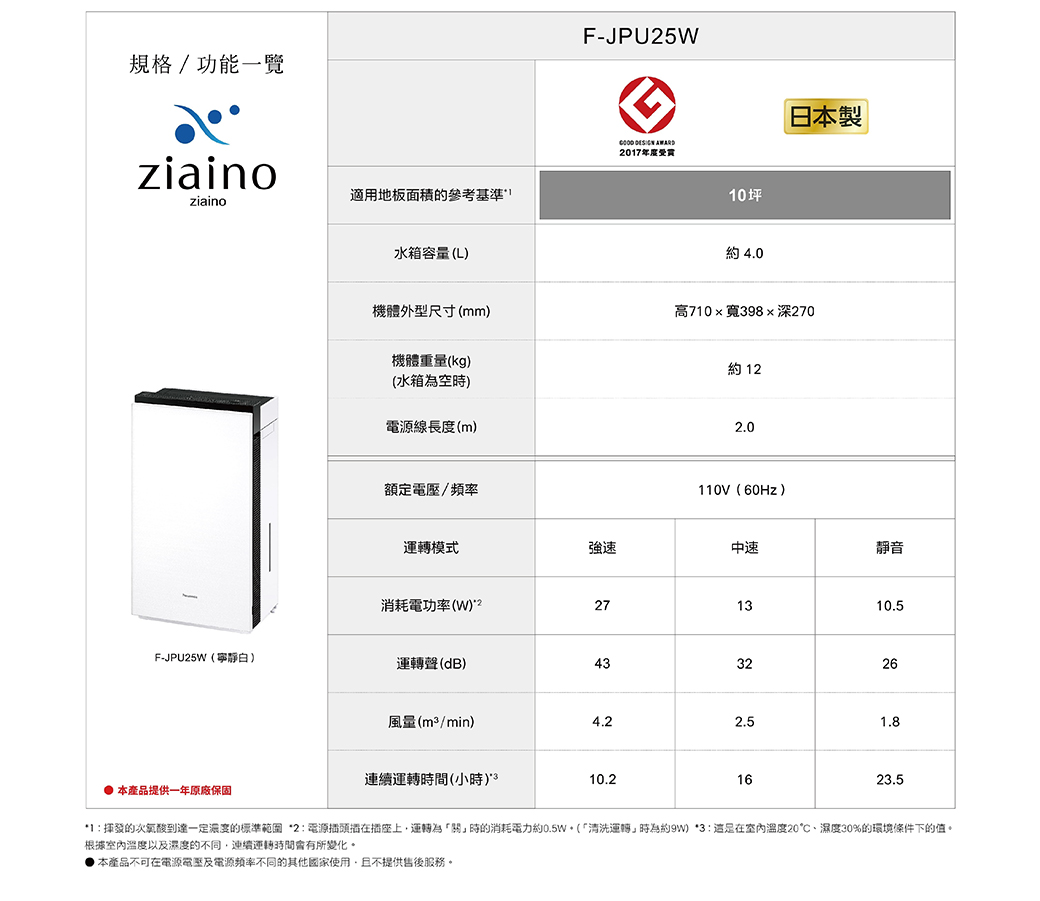 Panasonic 國際牌 Ziaino除菌脫臭空氣清淨機