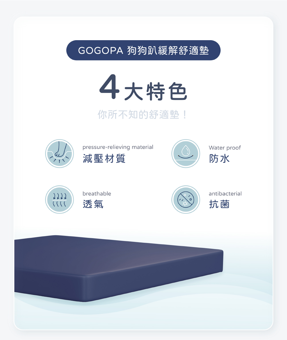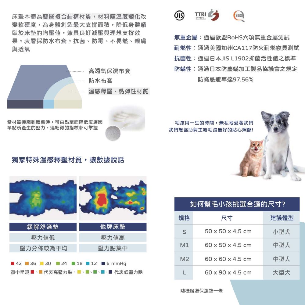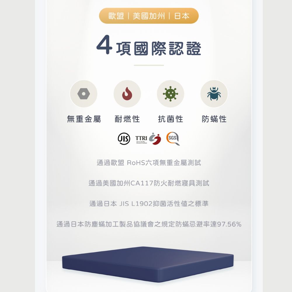 - 獨家特殊溫感釋壓材質,兼具舒適、減壓及支撐性 - 表層防水、抗菌、防霉、不易燃,親膚與透氣
