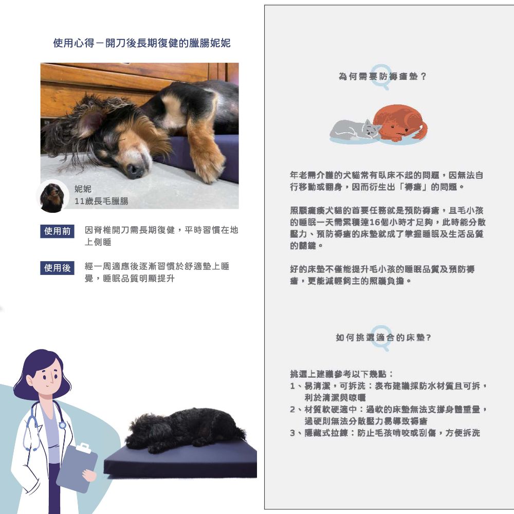 - 預防臥床所致之褥瘡發生,保障舒適的睡眠,有效預防老貓老狗久臥所產生的褥瘡
